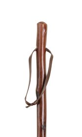 Chestnut hiking stick with spiked ferrule and brown leather wrist strap These sticks are all harvested from sustainable forests. Height 51" (130cm)