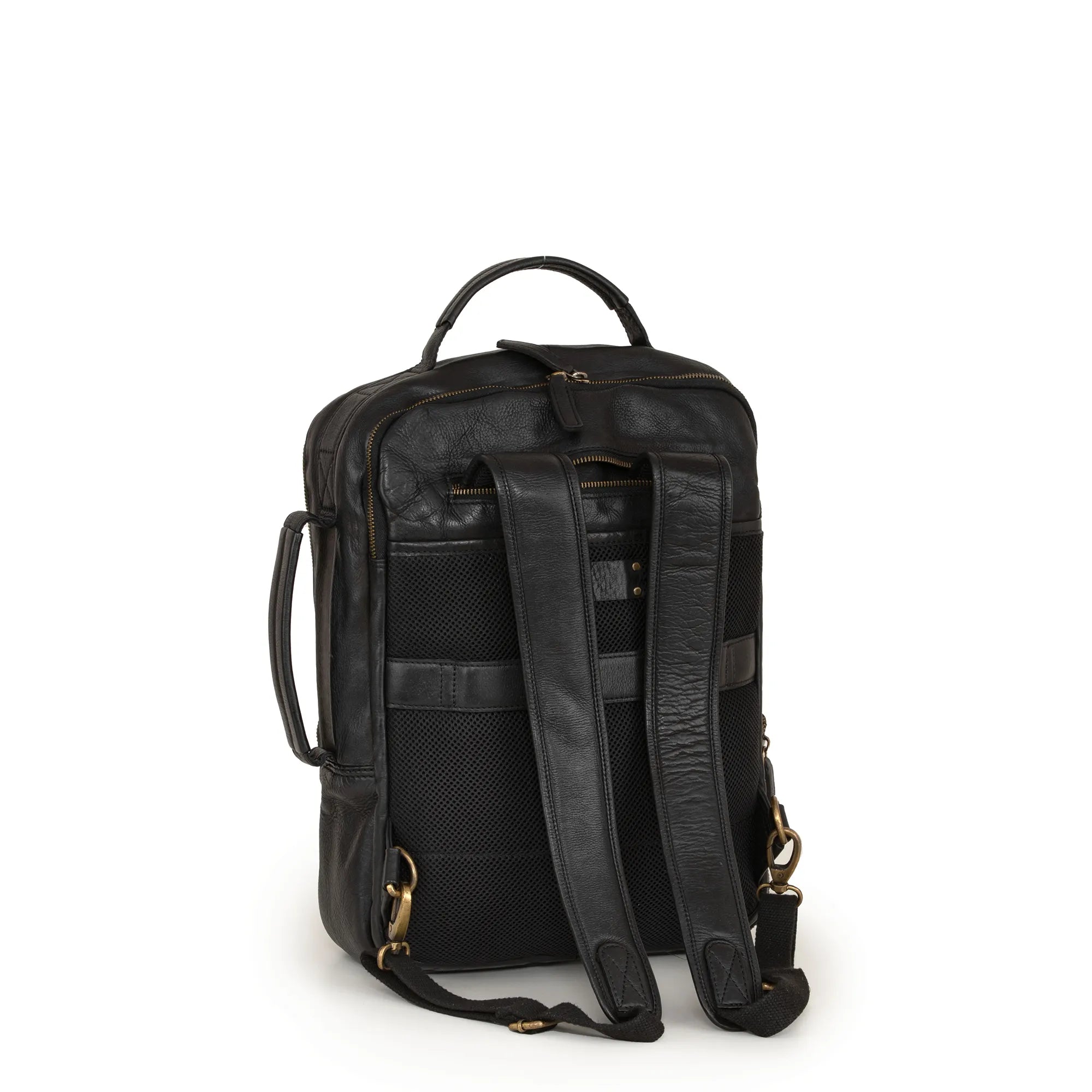 Practical backpack/briefcase in genuine, washed leather, with a bold, vintage effect